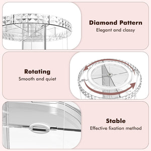 360° Rotating Acrylic Makeup Organizer – Multi-Tier Cosmetic Storage with Diamond-Cut Design